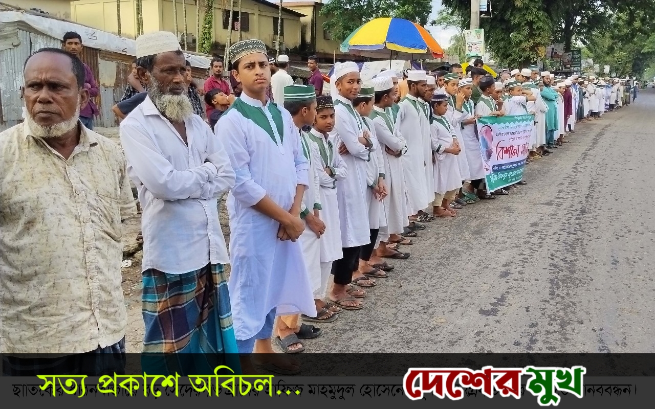 হাফিজ মামহুদ আলীর সভাপতিত্বে ও ইমাম উদ্দীন মামুনের সঞ্চালনায় মানববন্ধনে প্রধান অতিথির বক্তব্য রাখেন,গোবিন্দগঞ্জ আব্দুল হক স্মৃতি ডিগ্রি কলেজের ভারপ্রাপ্ত অধ্যক্ষ মহিউদ্দিন। এ সময় এরাব বক্তব্য রাখেন, জাউয়া ওয়েস্ট সালেহ আহমদ স্কুল এন্ড কলেজের প্রিন্সিপাল মাহমুদ আলী,সৎপুর মাদ্রাসার প্রধান মযহাদ্দিছ মাওলানা আব্দুল বাছিত,বিশিষ্ঠ সংগঠক মাওলানা আকবর আলী,শাপলা যুবসংঘের সাধারন সম্পাদক মজমুল হক,শাহমীর আহমদ,বিএনপি নেতা আব্দুল হাই লিপু,জামেয়া মারকাজুল উলুম বালিকা মাদ্রাসার শিক্ষ কেএম ছালেহ আহমদ,নিহতের আপন ভাতিজা সৈয়দ আশরাফুল হোসেন,জামেয়া মুহাম্মদীয়া ভূইগাঁও মাদ্রাসার শিক্ষক মাওলানা রিয়াজ উদ্দিন,আইন উদ্দিন সালমান,ধারন জামে মসজিদের ইমাম ও খতিব মনোয়ার হোসেন নাঈম,সেওতরপাড়া মাদ্রাসার শিক্ষক আব্দুল খালিক,শৈসাপুর মাদ্রাসার শিক্ষক আব্দুর রহমান,নতুন বাজার দাখিল মাদ্রাসার সহ সুপার আব্দুল মতিন আজাদ,শিক্ষক মেহদী হাসান,আবুল মনসুর,ধারন বাজারের ডাক্তার আছকির আলী প্রমুখ।